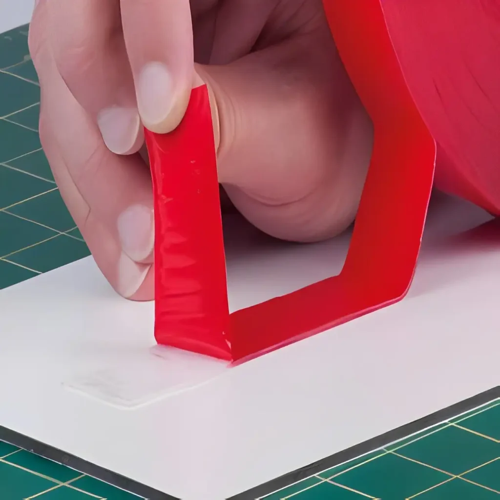 High-strength double-sided tape for bonding metal, glass, and plastic with clean and lasting adhesion.